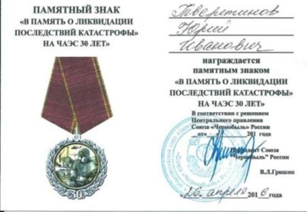 Удостоверение к Памятному знаку «В память о ликвидации последствий катастрофы на ЧАЭС. 30 лет»,